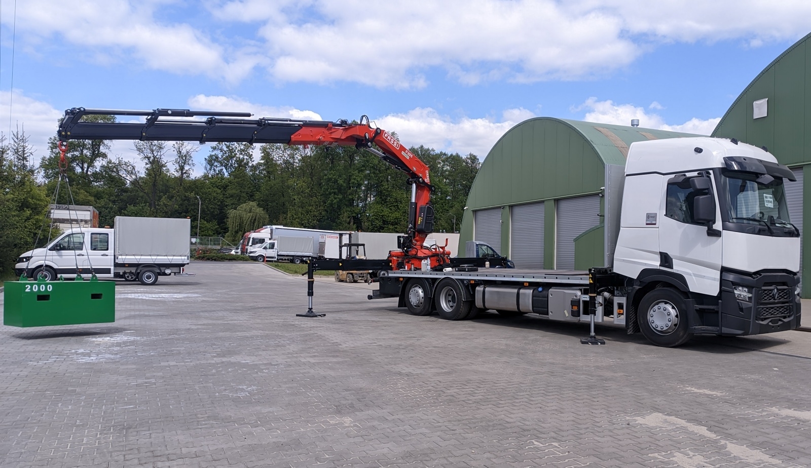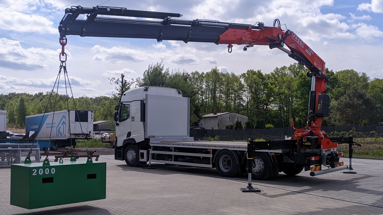 Wysięg i udźwig żurawia na końcu wysięgnika jest wystarczający do operowania z pustym kontenerem, którego masa na ogół wynosi około 2 000 kg.