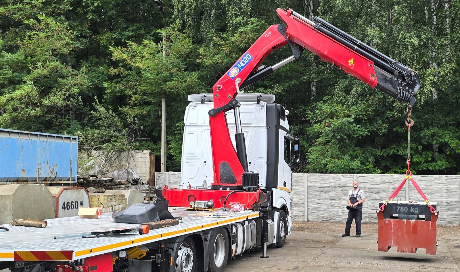 W tym rozwiązaniu można uzyskać pełne paramerty żurawia nawet gdy podpory nie są rozsunięte używając do poprawy stateczności ładunku na skrzyni ładunkowej.